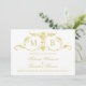 Gold wedding invitations, with elegant gold decor elements. 2 sided design. Personalise it on both sides, with your monograms, names and wedding details. Save the Date, Thank You, RSVP, information, etc.