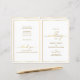 This foldable elegant wedding program features a faux gold border which will fit with many wedding themes. Designed to be printed on both sides and supplied flat for you to fold, the cover shows the venue whilst the inside can be edited with the order of service and wedding party.This modern design with gold borders is suitable for a religious church memorial service or a humanist ceremony. The FAUX gold foil effect is printed and is NOT metallic.