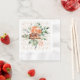 A beautiful bridal shower napkin, to match the paper plates, featuring a gold wedding ring pattern overlay with a huge watercolor orange Rose in the centre of the napkin.