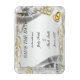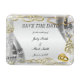 Pretty with gold swirls, diamond accents, and gold wedding rings. This beautiful save the date magnet is a stylish, long lasting way to announce your big day. Personalise the magnet by changing the text in the fields provided. You can change font style, size, and colour.