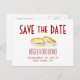 Red, White and Gold Modern Simple Save the Date Postcards with photo of gold wedding rings. Customise with your personal wedding announcement information. A beautiful, elegant design using fun font styles for text combined with two yellow gold and silver wedding bands.