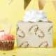 Pair of gold wedding rings on textured old-fashioned paper pattern.