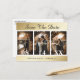 Elegant gold wedding photo save the date postcards featuring an engagement photo collage on a gold background. Personalised gold wedding save the date cards. Customisable gold wedding save the date cards. Large numbers wedding save the date cards. 3 photo save the date cards.