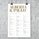 Minimalist typographical wedding seating chart in alphabetical order.