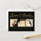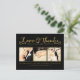 Gorgeous faux gold foil typography on the front of this designer postcard which you can upload into with 3 of your own engagement/wedding photo portraits. Easily and quickly personalise this designer professionally printed thank you postcard here and now by just typing over the example text and adding your own photographs. Elegant, chic, simple and classy gold script/cursive typograph.