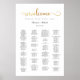 This minimal gold and white alphabetical seating chart is perfect for an elegant and classic wedding. You can change the background colour. Just click the customise further link, shown under the text personalisation area on the right, and choose your custom colour background. This vertical sign can be used to organise your guests alphabetically or by table number by changing the headings. This wedding poster includes enough room for up to about 100 guests. Make room for more (or less) guests by clicking the "customise" button and decrease or increase the size of the font.