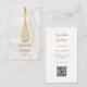 A chic business card featuring an elegant gold whisk on a marble swirls background with stylish gold typography and your QR code on the reverse. Designed by Thisisnotme©