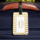Travel with a little style with these cute Gold & White Chevron Pattern with Monogram Luggage Tags. Great for any size bag to easily identify your luggage while travelling. Great gift ideas.