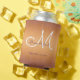 Gold White Elegant Floral Wedding Monogram Can Cooler