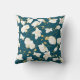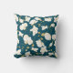 Modern pillow featuring an elegant floral pattern with beautiful gold and white stylised orchids on a blue background.