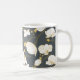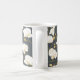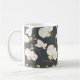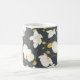 Elegant mug featuring a modern floral pattern with beautiful gold and white stylised orchids on a dark grey background.