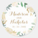 Use our faux gold foil and white flower envelope seal stickers to decorate your wedding envelopes. These classic sticker circles could also be used for many other purposes. The wording is completely customisable - if you need to change the font, font colour, size or the placement of the text boxes just click on the "Click to customise further" button to change those things. Be sure to check out our large selection of coordinating items by browsing the Gold and White Floral Wedding collection!