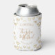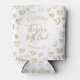 Fun customisable can cooler with gold hearts on a white background. Easy to personalise this can cooler using Zazzle edit tools. Gold hearts and typography. Custom wedding supplies.