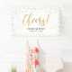 This event banner design features stylish gold confetti and "Cheers" typography on a white background. This banner will be a perfect decoration for a modern chic party. You can customise the text at the bottom of the banner for your events. (Birthday, Retirement, Wedding Anniversary, or any other celebrations)