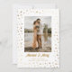 Modern white and gold Married and Merry photo Christmas card featuring a white and gold starry pattern.