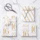 White and gold birthday gift wrapping paper with editable age number and personalised name plus a diagonal stripe accent sheet for an elegant and modern birthday present display.