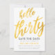 Gold White Save Date Thirty Birthday Party Invitation