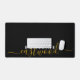 An elegant modern trendy style monogrammed desk mat with a sans serif first name and an elegant gold script last name. For home or office.