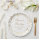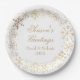 Traditional gold and white winter design with snowflakes. Easily edit the template to your desired names and year. Gold White Season's Greetings Paper Plates