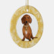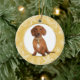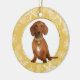Gold White Snowflake Border Red Dachshund Ceramic Ornament