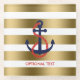 Modern gold and white stripes pattern with blue and red nautical boat anchor. Optional monogram.
