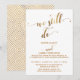 Here's a festive choice for your wedding anniversary celebration needs. Over a white background (the colour can be changed to anything you prefer,) I've placed typography graphics that read "we still do" and "and" featuring an elaborate script font embellished with hearts. The graphic was then overlaid with a smooth faux gold effect. A corresponding golden hue was used to render your personal details. Use the template fields to add your own details and click to customise further if you'd like to make any additional modifications. All layers are unlocked to allow for all the positioning and sizing control you desire. The back was covered in an elegant repeating pattern of nested faux-gold squares rotated to a diagonal.