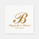 Custom personalised monogram paper napkins for weddings and related events. Personalise this elegant wedding accessory with the bride and groom names, wedding date, initial or anything you like. Simple, elegant gold script text on white background.