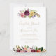 This gold wild feather boho tropical couples shower invitation is perfect for a modern wedding shower. The design features hand-painted brown wild feathers, boho yellow, white, purple, pink, blush, burgundy flowers and blue berries neatly arranged into beautiful bouquets.