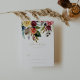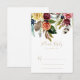 These gold wild feather boho tropical floral RSVP cards are perfect for a modern wedding. The design features hand-painted brown wild feathers, boho yellow, white, purple, pink, blush, burgundy flowers and blue berries neatly arranged into beautiful bouquets.