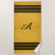Gold with Vertical Black Monogram Bars & Diamonds Beach Towel