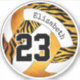 This wild zebra stripes girl's volleyball sticker features a bold zebra stripes accent pattern on four of the volleyball's panels - the zebra stripes panels plus three other panels have an orange/gold background that contrasts with the remaining white volleyball panels - customise with player name and jersey number - by katz_d_zynes