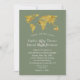 Gold World Map Destination Sage Green Wedding Invitation