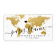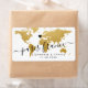 Gold modern world map with a custom heart location and wedding destination with the bride and groom's names and wedding date on sticker labels that are perfect for a travel theme bridal shower or travel loving couple's wedding or rehearsal dinner. Move the heart anywhere on the map and type in the city or country name. – Visit our Designer Shop for coordinating items with the same international travel theme!