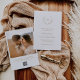 Elegant wedding save the date featuring a clean and timeless design with your monogram inside of a wreath crest. The back has your favourite photo and a QR Code.