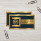 Overleaf, in a similar gold frame theme, the gold logo is at the top followed by your name, contact details and a slogan option to publicise your services. Lettering here are in faux gold.