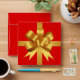 Gold yellow bow ribbon holiday gift square red CD Envelope