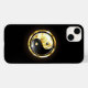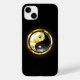 Jewellery, gold and black yin yang symbol on a black background. Gold yin yang.