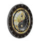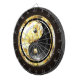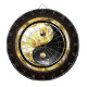 Jewellery, gold and black yin yang symbol on a black background. Gold yin yang.