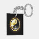 Jewellery, gold and black yin yang symbol on a black background. Gold yin yang.