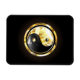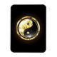 Jewellery, gold and black yin yang symbol on a black background. Gold yin yang.