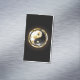 Jewellery, gold and black yin yang symbol on a black background. Gold yin yang.