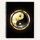 Jewellery, gold and black yin yang symbol on a black background. Gold yin yang.