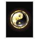 Jewellery, gold and black yin yang symbol on a black background. Gold yin yang.