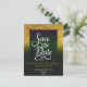 Gold and dark green damask decorative vintage decorative frame save the date announcement postcards. Would suit many popular wedding themes and ideas. Vintage but still a modern style wedding or engagement announcement cards.