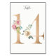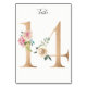 Golden number with soft pastel floral embelishment table number card. Personalise text font style, size, and colour.