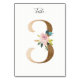 Golden number with soft pastel floral embelishment table number card. Personalise text font style, size, and colour.