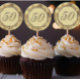 Golden 50th Anniversary Cupcake topper. Personalise your cupcakes with a sticker topper. Stick onto a lollipop stick or toothpick back to back - Your party guests will love these Unique treats with a personal touch! Other matching items available in our store.