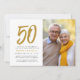 Celebrate 50 years with this white and faux gold glitter invitation featuring a large stylised 50 along with a photo of the guests of honour. This works well for a golden 50th birthday or a 50th anniversary party. Can also be a throwback wedding photo instead of a current one!
