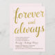 A glamourous wedding anniversary party invitation that features the phrase "Forever and Always" written in a pretty calligraphy script with a faux gold foil look, and a light pink background. The text can be customised to fit any anniversary.