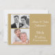 This 50th wedding anniversary invitation features a gold color background and a fine lace like decoration on the sides as well as two areas for the couples photos. The back is white with a gold fine lace like decoration. It's ready to personalize and is suitable for a golden, 50th wedding anniversary.